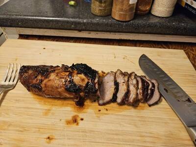 - You can baste the pork with the marinade syrup every 10 minutes if you'd like, I usually wait until the end.
