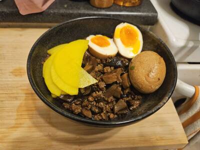 - While the pork is cooking, this is a good time to make soft boiled eggs if you didn't do it earlier.