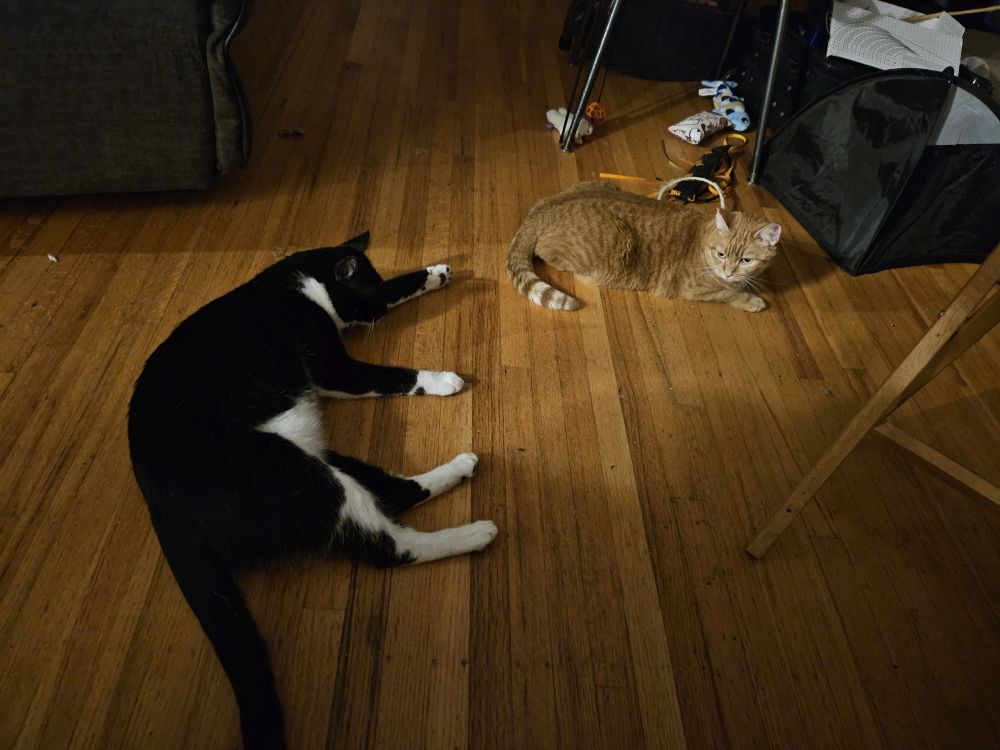 Instead, here's a picture of our cats and bunch of food we like to make! Check back as we add more recipes.